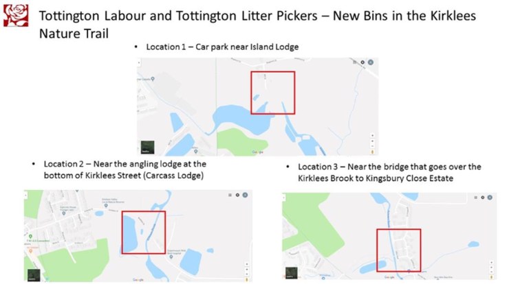 November 18, 2018friendsofkirkleesvalleyLeave a Comment on New bins for Kirklees Nature Trail New bins for Kirklees Nature Trail A collaboration between Tottington Litter Pickers and Tottington Labour has seen the successful installation of much needed litter bins in the Kirklees Nature Trail. These bins will provide cover for an area that had no bin provision previously. This will help to reduce litter and bagged dog waste being dropped on the floor. The installation of the bins was supported by Councillors Southworth and Hayes of Elton ward. Locations below: Share this: Click to share on X (Opens in new window) X Click to share on Facebook (Opens in new window) Facebook Like Loading...